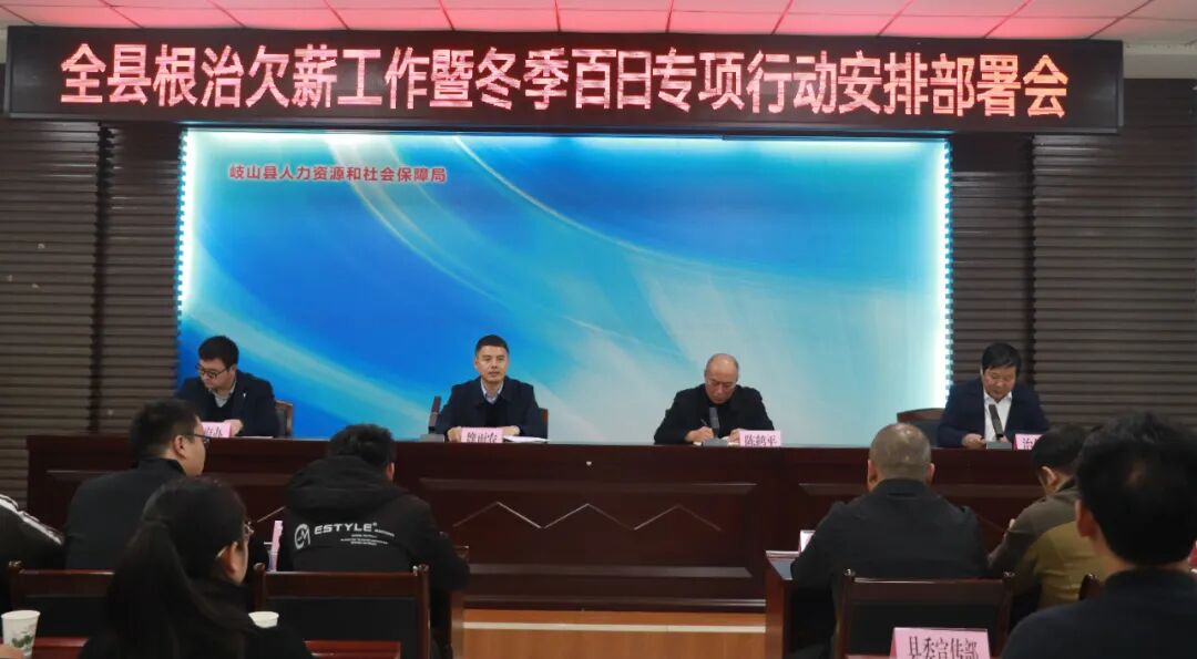 11月21日,岐山县根治欠薪工作暨冬季百日专项行动安排部署会议在县社保中心六楼会议室召开。县委常委、常务副县长、县治欠工作领导小组组长魏雨农出席并讲话,经开区党工委专职副书记、县治欠工作领导小组副组长陈鹤平出席会议,县人社局局长王力行、各镇分管负责同志、县治欠工作领导小组成员单位负责同志、全县部分在建项目主要负责同志参加会议。